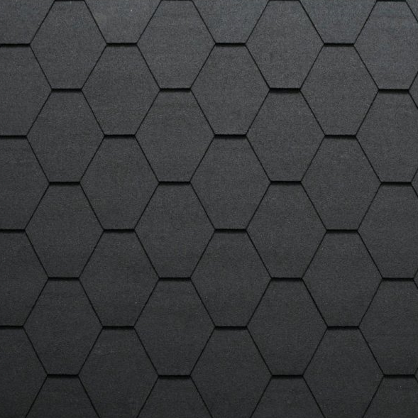 Asfaltová vysoce kvalitní střešní krytina Premium Mosaik, s osnovou šestihranných tvarů a mimořádným barevným odstínem posypu, umožňuje na střeše dosáhnout příjemného „mozaikového“ efektu.