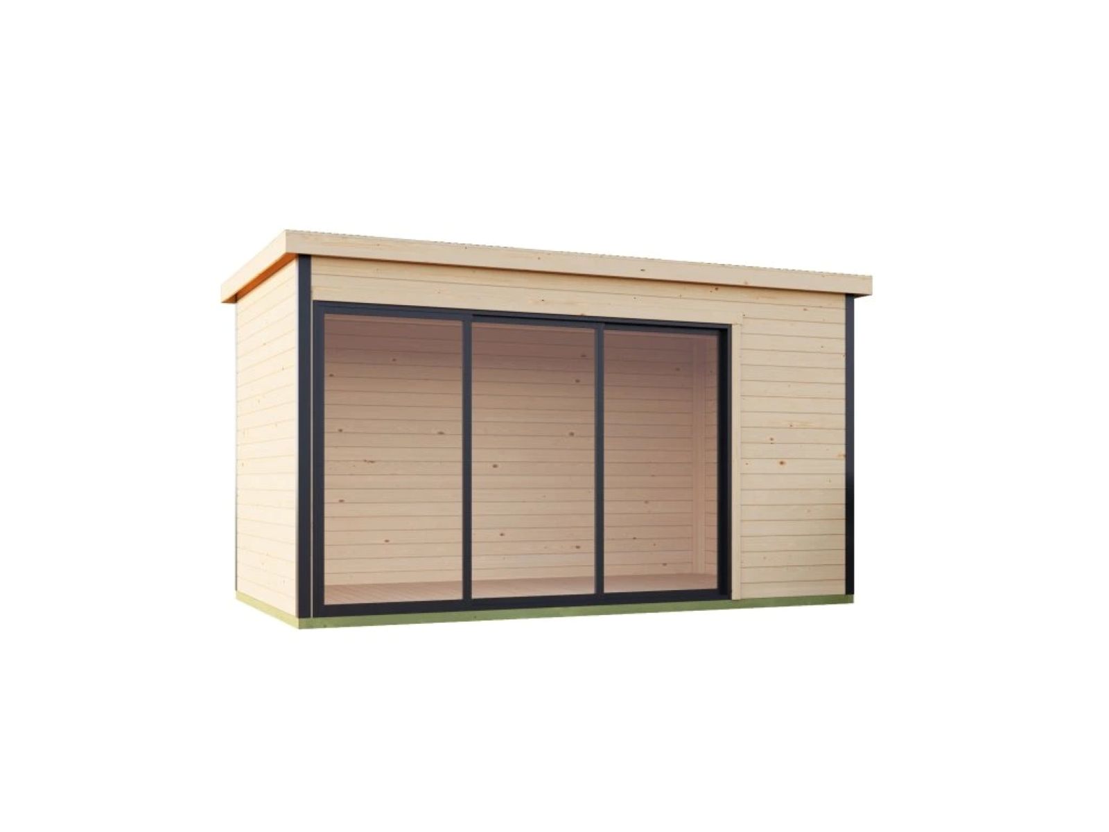 Moderní zahradní domek s velmi pěkným designem za solidní cenu. Díky pultové střeše a panoramatickému oknu bude ozdobou každé, i menší zahrady.