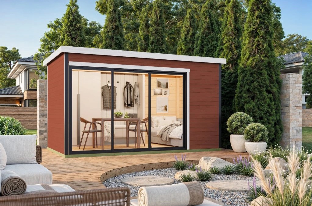 Elegantní roubený dřevěný domek Austin 4 nabízí uvnitř mnoho světla. Díky dvoukřídlým dveřím s prosklením působí jako malý krychlový domeček, ve kterém se cítíte opravdu jako doma. Můžete ho využít k uskladnění různých věcí, ale ještě lepší a hezčí je zařídit si zde skvělou domácí kancelář, dílnu, hobby místnost, útulnou odpočinkovou zónu s koutkem na čtení - zkrátka popusťte uzdu své fantazii a objednejte ještě dnes!