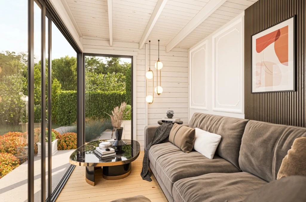 Elegantní roubený dřevěný domek Austin 5 nabízí uvnitř mnoho světla. Díky dvoukřídlým dveřím s prosklením působí jako malý krychlový domeček, ve kterém se cítíte opravdu jako doma. Můžete ho využít k uskladnění různých věcí, ale ještě lepší a hezčí je zařídit si zde skvělou domácí kancelář, dílnu, hobby místnost, útulnou odpočinkovou zónu s koutkem na čtení - zkrátka popusťte uzdu své fantazii a objednejte ještě dnes!