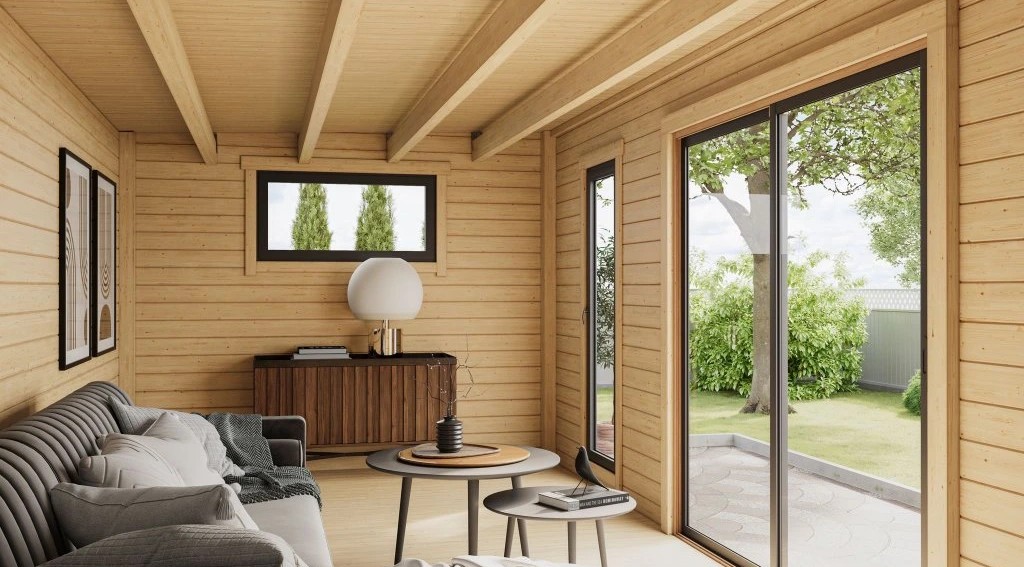 Elegantní roubený dřevěný domek Austin 7 nabízí uvnitř mnoho světla. Díky dvoukřídlým dveřím s prosklením působí jako malý krychlový domeček, ve kterém se cítíte opravdu jako doma. Můžete ho využít k uskladnění různých věcí, ale ještě lepší a hezčí je zařídit si zde skvělou domácí kancelář, dílnu, hobby místnost, útulnou odpočinkovou zónu s koutkem na čtení - zkrátka popusťte uzdu své fantazii a objednejte ještě dnes!