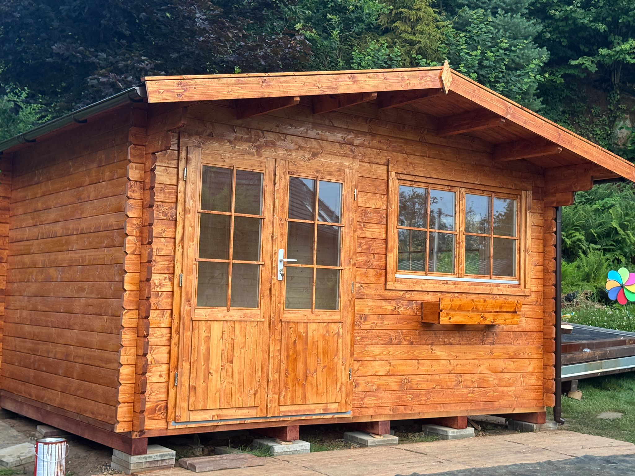 Detaily: Domek je vyroben ze severského dřeva o tloušťce 34 mm. Domek je vyroben a dodán jako stavebnice. Součástí dodávky je kompletní kování, podlaha a dřevěný rošt. Podlaha a střešní prkna jsou řešeny pero-drážkovým systémem. Okna i dveře jsou vyplněny dvojsklem. Součástí dodávky nejsou střešní krytiny, barvy a laky. Ceny zahradních domků jsou uvedeny bez montáže a dopravy.